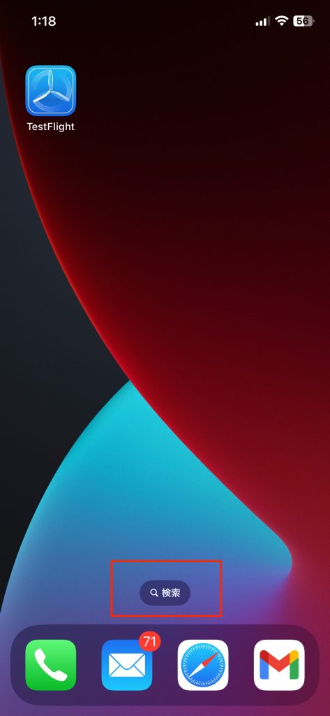 iOS16のホーム画面の下部にある検索ボタンを非表示にする方法