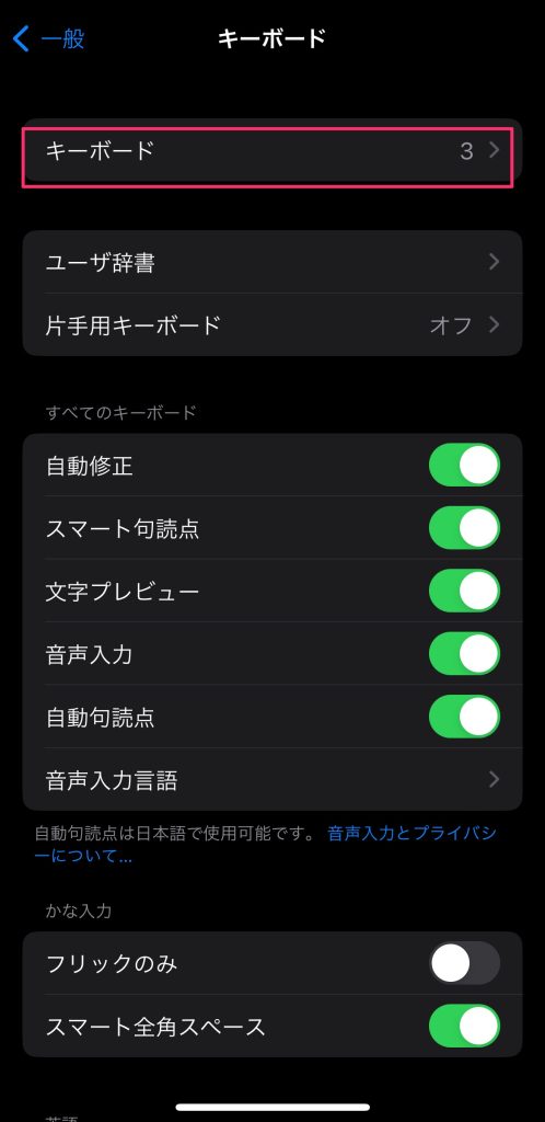 2.「キーボード」をタップします。