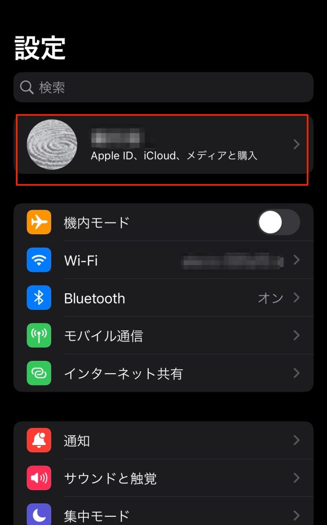 1.設定画面を開き、自分のアカウントをタップします。