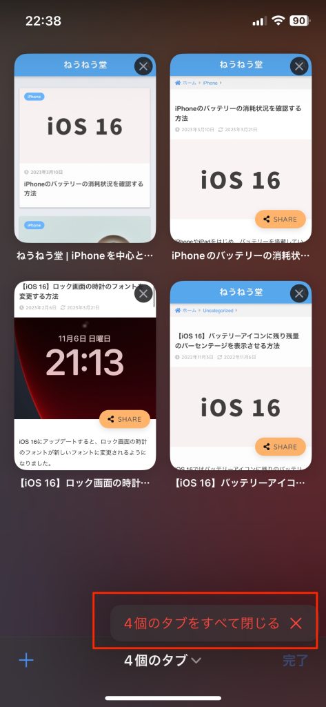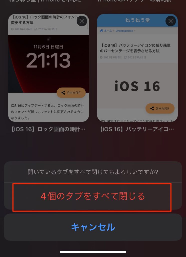 【iOS 16】Safariで開いたタブを一括で閉じる方法